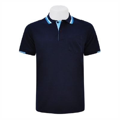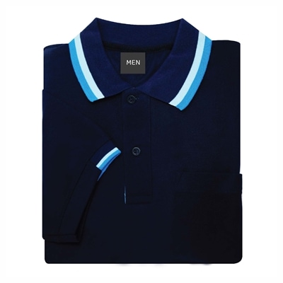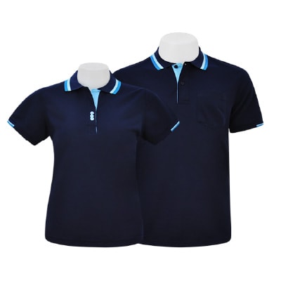 เสื้อโปโลสีกรมขลิบฟ้า รุ่น NU Polo ผลิตจากเส้นด้าย TK RING คุณภาพดี สวมใส่สบาย ดีไซน์สวย สัมผัสนุ่ม