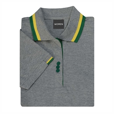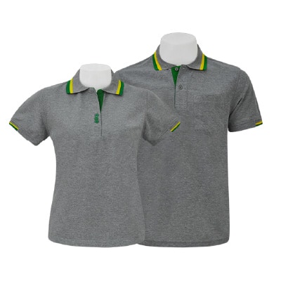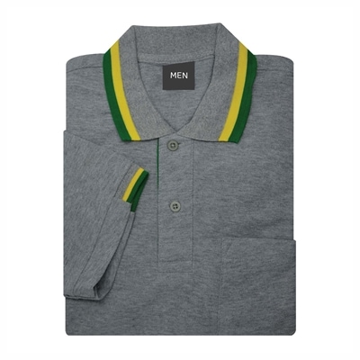 เสื้อโปโลเทาขลิบเขียว รุ่น NU Polo ผลิตจากเส้นด้าย TK RING คุณภาพดี สวมใส่สบาย ดีไซน์สวย สัมผัสนุ่ม